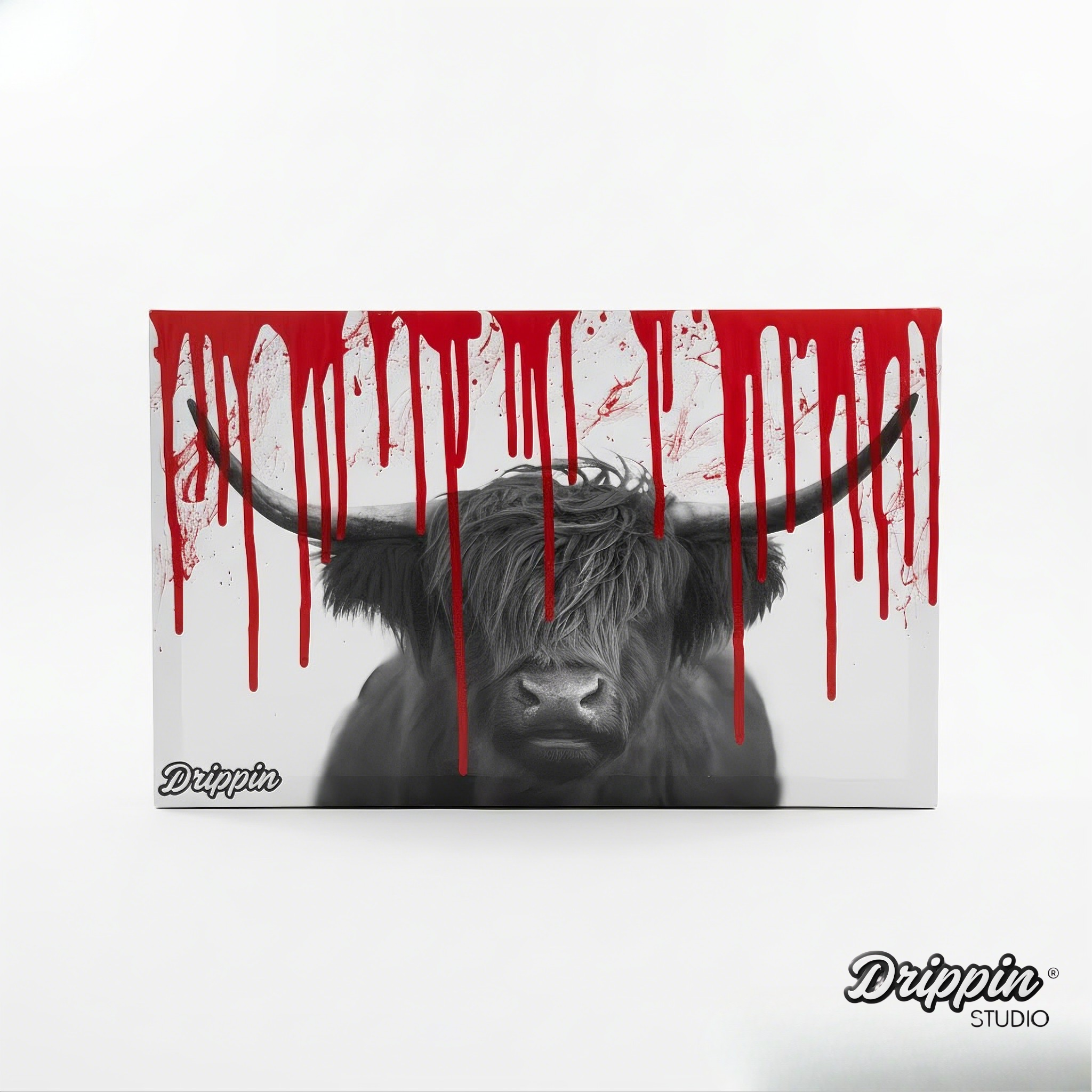 The monochrome base highlights the natural dominance of the form, while the controlled red drips introduce tension, contrast, and disruption. The paint doesn’t overwhelm—it punctuates. It speaks.